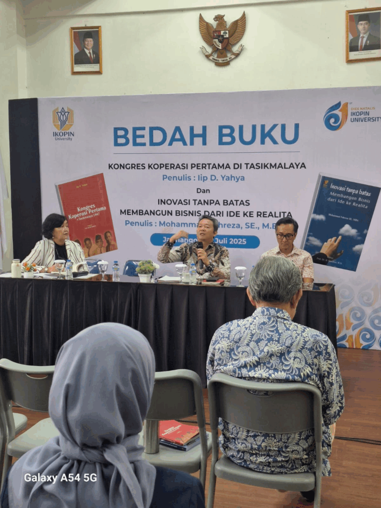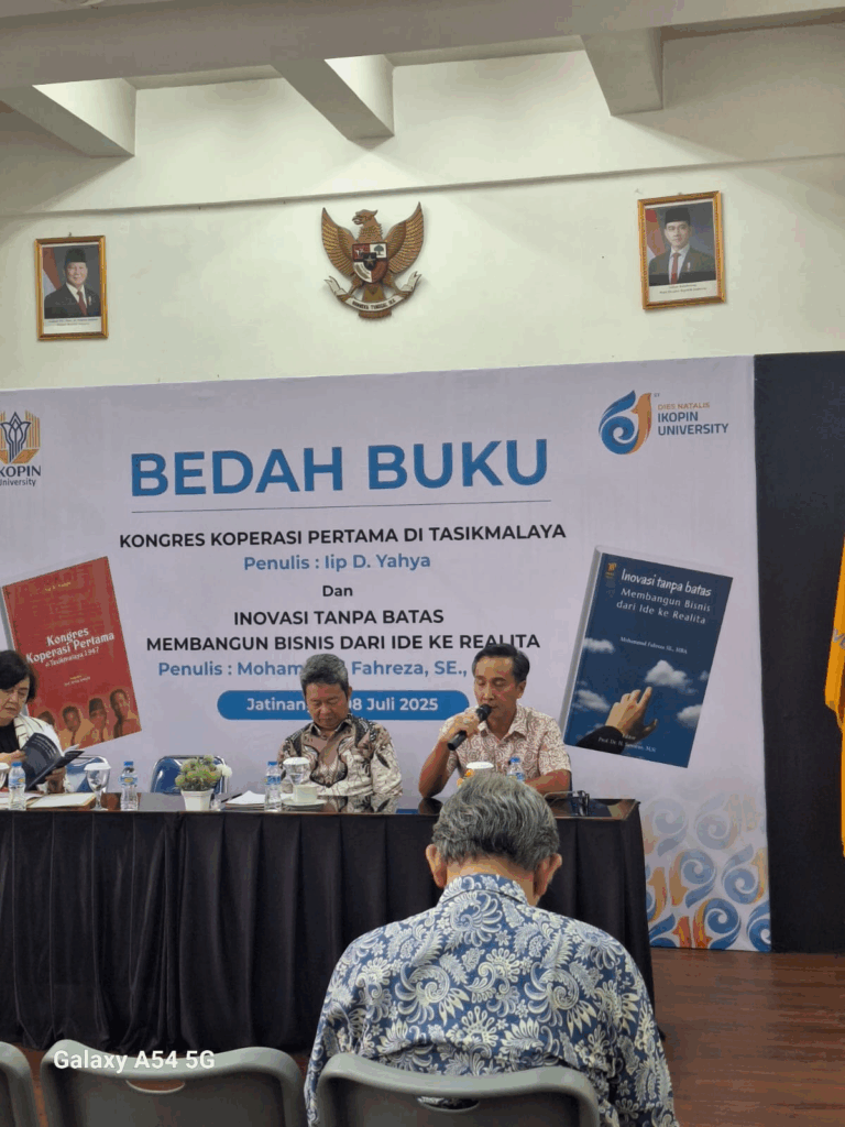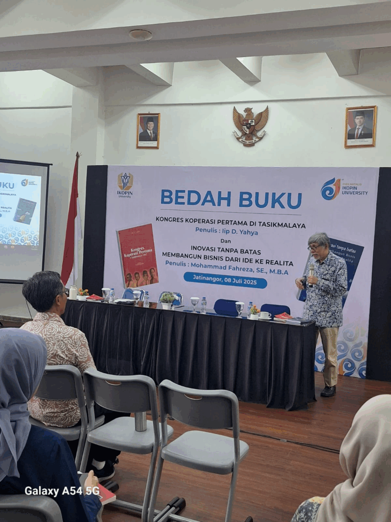 Selasa, 8 Juli 2025 di kampus Ikopin University diadakan Bedah Buku Perkoperasian dan Inovasi Bisnis. Bedah Buku tersebut diselenggarakan dalam rangka Dies Natalis Universitas Koperasi Indonesia dan Hari Koperasi Indonesia. Pada kali ini buku yang dibedah ada dua buku, yaitu Buku Kongres Koperasi Pertama Di Tasikmalaya karya Iip D. Yahya dan Buku Inovasi Tanpa Batas Dari Ide Sampai Realita karya Mohammad Fahreza. Iip D. Yahya adalah seorang Penulis Profesional yang sudah menulis puluhan buku bermutu dengan basis sejarah sesuai dengan keahlian beliau sebagai lulusan Jurusan Sejarah Kebudayaan Islam Fakultas Adab dan Humaniora Universitas Islam Sunan Gunung Djati Bandung. Sementara Mohammad Fahreza adalah Dosen Program Studi Sarjana Manajemen Fakultas Ekonomi dan Bisnis Universitas Koperasi Indonesia yang saat ini sedang mengambil program Doktor Manajemen Universitas Pendidikan Indonesia.