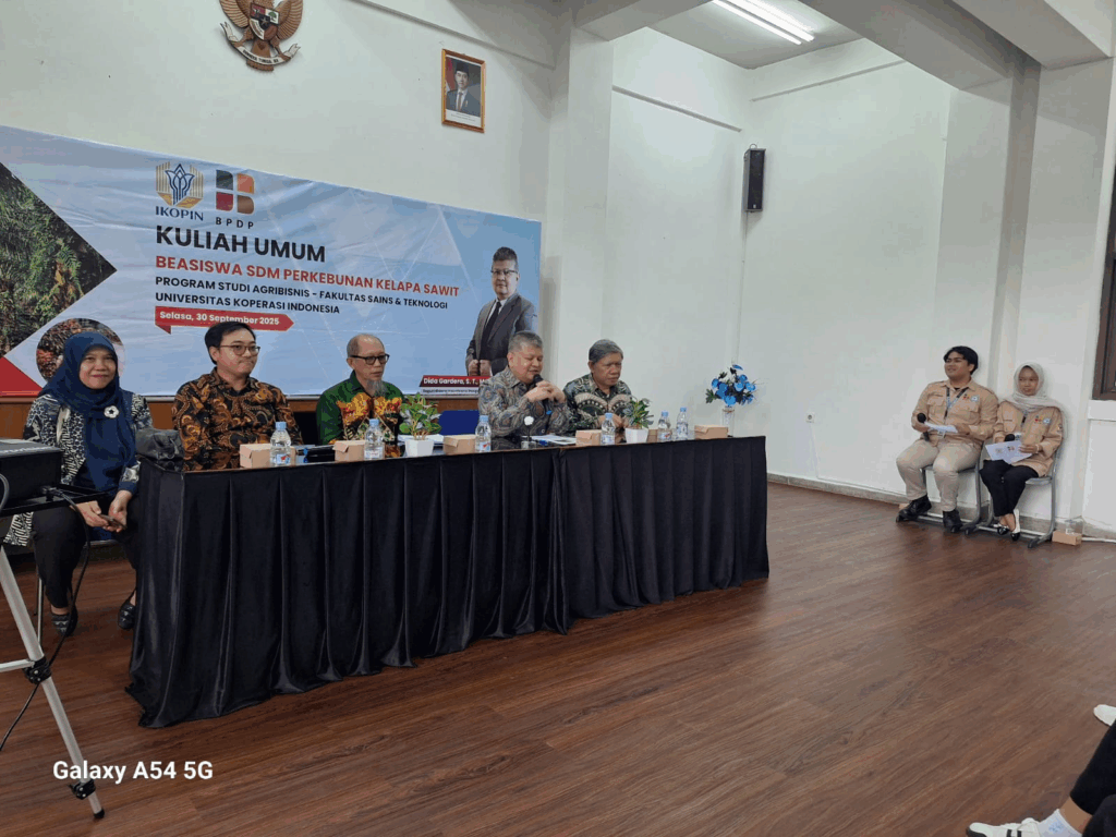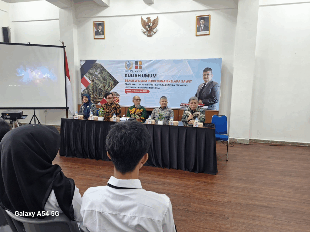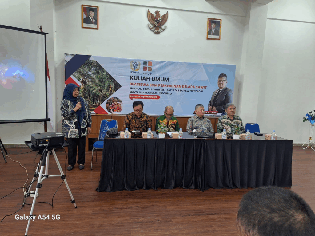 Selasa 30 September 2025 Program Studi Sarjana Agribisnis Fakultas Sains Dan Teknologi Universitas Koperasi Indonesia menyelenggarakan Kuliah Umum dalam rangka menyambut mahasiswa baru tahun 2025. Kuliah Umum tersebut menghadirkan Narasumber dari Keungan Republik Indonesia Dida Gardera, ST., M.Sc., yang merupakan Direktur Bidang Koordinasi Pangan dan Agribisnis.