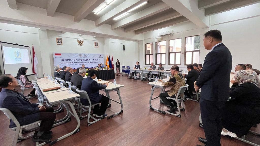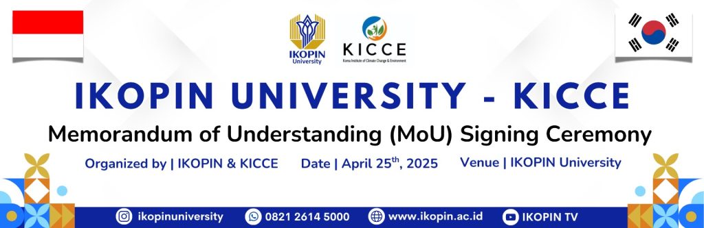 Jum’at, 25 April 2025 Ikopin University mengadakan penandatanganan Memorandum of Understanding (MoU) dengan Korea Institute of Climate Change And Environment (KICCAE) Korea. MoU ini dimaksudkan untuk memperkuat kerja sama dua perguruan tinggi dari dua negara yang berbeda. Setidaknya ada tiga hal yang dapat dikerjasamakan yaitu bidang Pendidikan, Penelitian dan Pengabdian Pada Masyarakat. Dalam bidang pendidikan dapat dilakukan seperti pertukaran mahasiswa dan atau pertukaran dosen. Sementara di bidang penelitian dapat dilakukan Join Research atau penelitian bersama baik dilakukan kolaborasi pihak dosen dari dua perguruan tinggi maupun pihak mahasiswa. Adapun bidang pengabdian pada masyarakat dapat dilakukan dengan terjun bersama ke lapangan atau sebuah lokasi baik di Indonesia maupun di Korea dalam memberikan kontribusi nyata pada masyarakat.