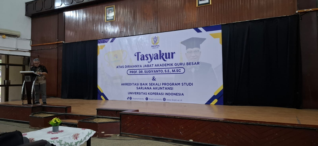 Jum’at, 9 Mei 2025 di Graha Suhardani Universitas Koperasi Indonesia diadakan Tasyakur atas diraihnya Gelar Guru Besar yang diperoleh Prof. Dr. Sugianto, SE., M.Sc. dan Program Studi Sarjana Akuntansi yang mendapat akreditasi Sangat Baik dari LAMEMBA.