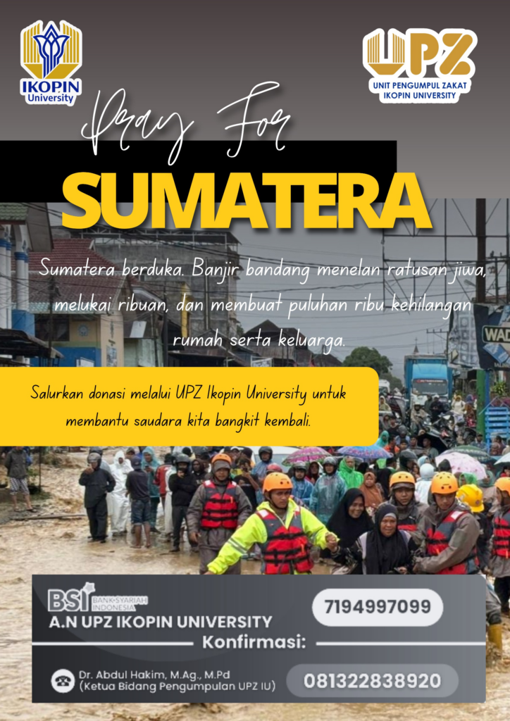 Kamis 18 Desember 2025 Unit Pengumpul Zakat (UPZ) Universitas Koperasi Indonesia menyerhakan bantuan atau donasi untuk korban bencana di Sumatra melalui Badan Amil Zakat Nasional (BAZNAS) Jawa Barat. Dana tersebut sebelumnya dikumpulkan oleh UPZ Ikopin University selama kurang lebih satu minggu yang diterima dari civitas akademika Universitas Koperasi Indonesia yang terdiri dari unsur mahasiswa yang dikumpukan oleh pihak BEM dan unsur dosen serta tenaga kependidikan yang diterima langsung melalui rekening UPZ. Penyerahan dana yang terkumpul melalui UPZ diserahkan langsung oleh Ketua UPZ Universitas Koperasi Indonesia Nanang Sobarna, S.HI., M.E.Sy., dan diterima oleh BAZNAS Jabar di Jl. Diponegoro Bandung.